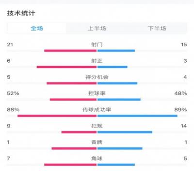 国米20亚特兰大全场数据:射门2115,射正63,得分机会54