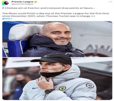 英超官方展望:“如果切尔西赢埃弗顿,而利物浦在热刺身上丢分...那么切尔西将自2021年12月以来,首次在一个完整的比赛日结束后位居英超榜首,当时切尔西的主帅还是图赫尔。”