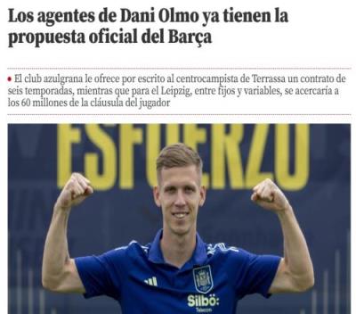 砸钱!世体:巴萨6000万欧正式报价奥尔莫!合同期六年!
