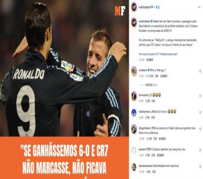 范德法特表示:“如果我们赢了6-0,但C罗没进球,他不会高兴,他是自私的。”C罗社媒评论到:“他是谁?”