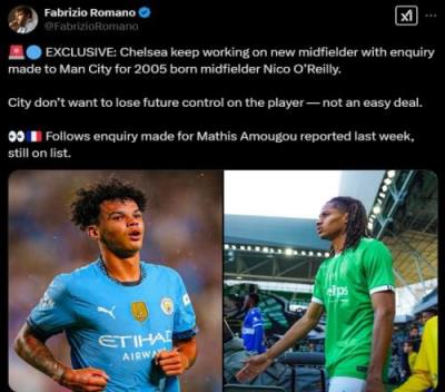 报道称蓝军希望在中场位置引进新援,已经向曼城询问奥赖利的情况。曼城不想失去对于奥赖利未来的掌控,所以交易并不容易达成。切尔西还询问了阿穆古的情况,他也仍在引援名单之中。