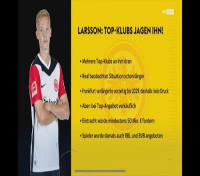 “拉尔森当前合同2029年到期,他本人和法兰克福都乐意继续合作。但他并不被视为非卖品,法兰克福预计至少要价5000万欧元。”