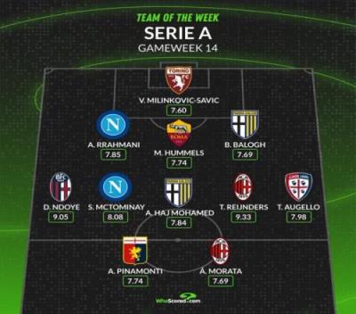 whoscored本周意甲最佳阵:
