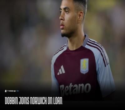 官方:维拉小将刘易斯多宾租借诺维奇,租借期至本赛季结束