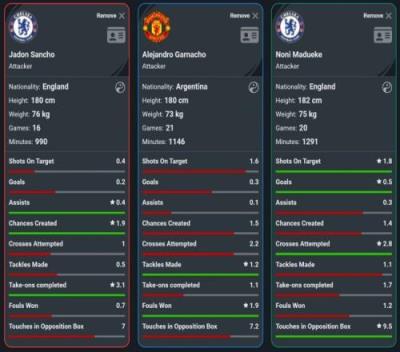 英超场均数据对比:桑乔助攻多、马杜埃凯射门强、加纳乔防守好