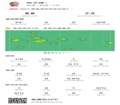身价2亿哈兰德辣眼睛数据:1次射门0射正0过人成功0关键传球