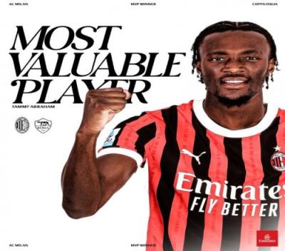 体育资讯2月6日报道宣称 在今日凌晨进行的意大利杯1/4决赛中,AC米兰主场3-1战胜罗马,晋级四强。本场比赛亚伯拉罕首发出战,贡献双响。