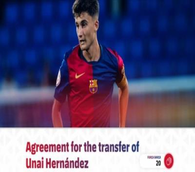 体育资讯2月1日报道宣称 巴萨官方宣布,俱乐部和吉达联合达成协议,20岁中场乌奈-埃尔南德斯将加盟这家沙特俱乐部。