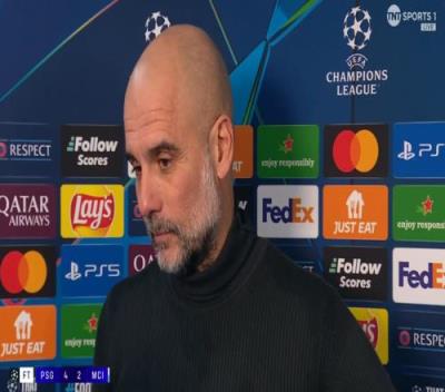 体育资讯01月23日报道宣称 本轮欧冠,曼城2-4遭巴黎逆转,球队排名第25,需要在末轮对决布鲁日来争取附加赛席位。赛后,瓜迪奥拉接受采访。
