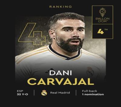 2024金球奖具体得分以及记者投票详情公布,右后卫卡瓦哈尔获得550分,排名第四。