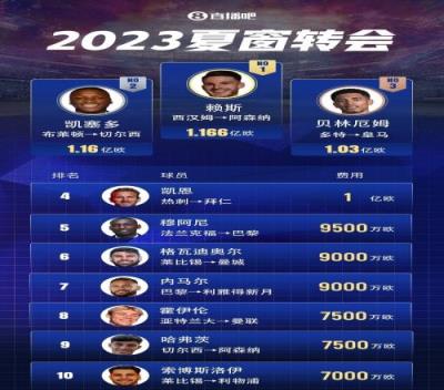 大多不水2023夏窗前十:赖斯标王!4位亿元先生,内马尔去新月