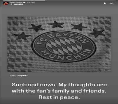 凯恩转发了拜仁的动态,并写道:“这个消息太令人伤心,我与这位球迷的家人和朋友同在,向他们致以慰问,安息吧。”