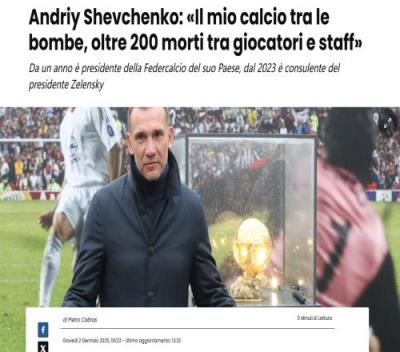 体育资讯01月03日报道宣称 前金球奖得主、现乌克兰足协主席舍甫琴科接受意大利《信使报》采访时,对外宣称已经有超过200名足球界人士因俄乌战争丧生。