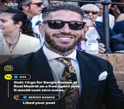 媒体433社媒发布了古蒂的言论,而拉莫斯为这条动态点赞。