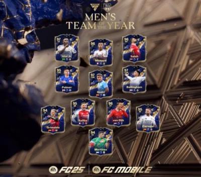 FC25年度蓝阵容:姆总、维尼修斯、萨拉赫三叉戟,贝林罗德里入选