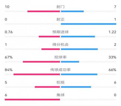 曼联半场00水晶宫:射门107,射正01,得分机会12,角球60