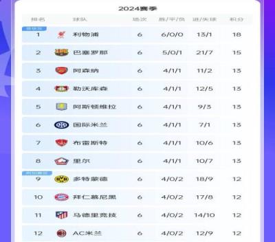 体育资讯12月12日报道宣称 新赛制欧冠6轮比赛战罢,红军利物浦6战全胜排在积分榜第一位。