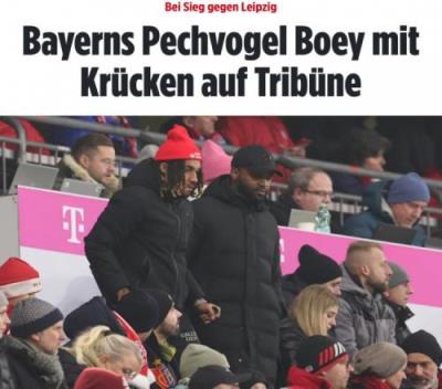 拜仁在不久前的年度收官战5-1大胜莱比锡,在一周前受伤的博伊被发现来到现场观看比赛,但他却拄着拐杖。该媒体指出,博伊此次是左脚踝韧带受伤,从他的拄拐情况来看,恐怕很难在短期内复出。
