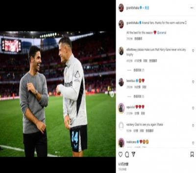扎卡也晒出了多张和阿尔特塔以及前队友互动的照片,并表示:“阿森纳球迷们,感谢你们温暖的欢迎。祝福阿森纳新赛季一切顺利❤️”