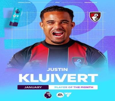 体育资讯2月7日报道宣称 英超官方已经宣布,伯恩茅斯前锋克鲁伊维特当选1月英超最佳球员。