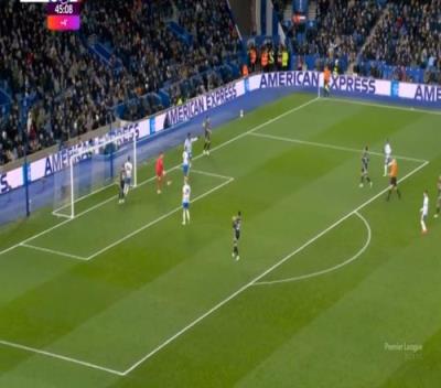 45:39—45:54,恩瓦内里站定,始终没有发出角球,裁判出示黄牌