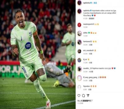 拉菲尼亚社媒庆祝:艰难客场拿下三分,在联赛再次赢球很重要