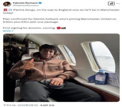 体育资讯2月1日报道宣称 据知名记者罗马诺透露,多古正在前往英国的途中,他将是阿莫林在曼联的首笔签约。