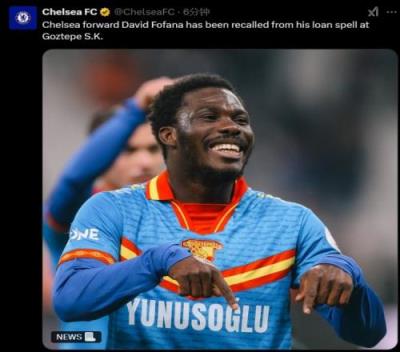 体育资讯2月4日报道宣称 切尔西官方宣布,22岁外租中锋大卫-福法纳被召回。