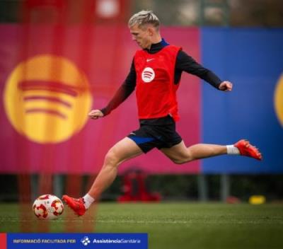 巴萨官方:奥尔莫右腿比目鱼肌超负荷,将缺席欧冠与本菲卡比赛