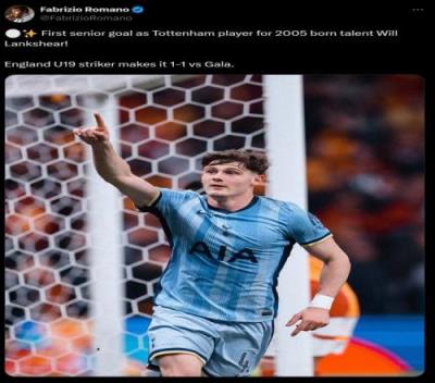 19岁201天!在1112赛季凯恩后,兰克希尔成热刺最年轻欧战进球者
