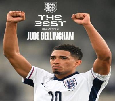 英格兰队官推也发布海报并送上祝贺:“贝林厄姆入选了FIFA男足年度最佳阵容。”