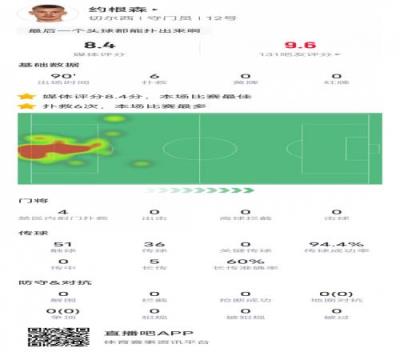约根森本场比赛数据:6次扑救全场最高,评分8.4全场最佳