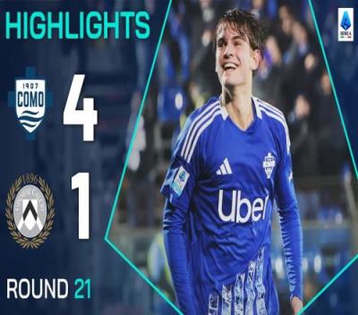 体育资讯01月22日报道宣称 意甲第21轮,科莫主场4-1完胜乌迪内斯,科莫小将帕斯延续了近期出色的状态,在第90分钟攻入一球。