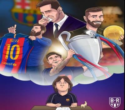 体育资讯2月4日报道宣称 在21年前的2月4日,梅西与巴萨签下了生涯第一份职业合同,外媒B/R也制作漫画回顾了梅西在巴萨的一些重要时刻。