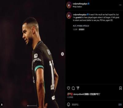 加克波写道:“这个结果没有达到我们的预期,但能在我足球生涯的起点进行比赛,我深怀感激。我很高兴能回到这里,更高兴能再次见到埃因霍温球迷们。”