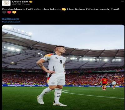 德国队官推配文写道:“德国年度足球先生,祝贺你,托尼!”