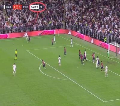 被打懵or等下班上半场补时最后1分钟皇马角球配合变成巴萨进球