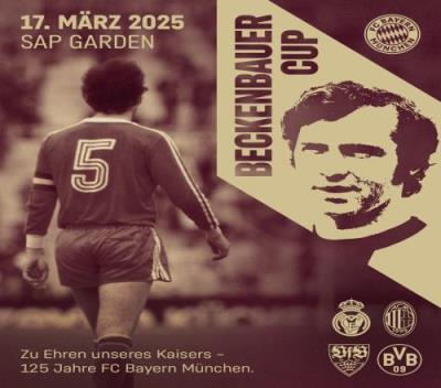作为纪念俱乐部成立125周年的活动,拜仁将于2025年3月17日举办“贝肯鲍尔”杯传奇赛,所得款项将捐给贝肯鲍尔基金会。
