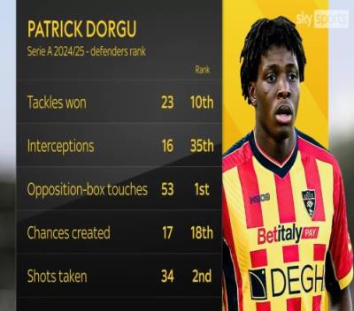 本赛季多古在意甲防守球员中的数据排名(封面图):