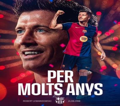 体育资讯8月21日报道宣 今天是巴萨前锋莱万的36岁生日,巴萨官方为他送上祝福。