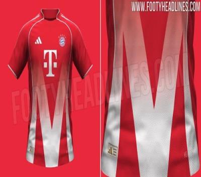 据footyheadlines报道,拜仁下赛季主场球衣采取红白配色,球衣胸前有巨大的字母M,从红色渐变为白色,这是为了致敬慕尼黑市。