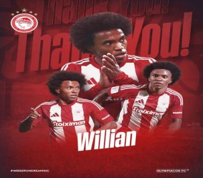 威廉现年36岁,这位巴西边锋去年夏天离开富勒姆后加盟奥林匹亚科斯,他为这支希腊球队出战11次仅贡献1次助攻,双方于12月底解约。