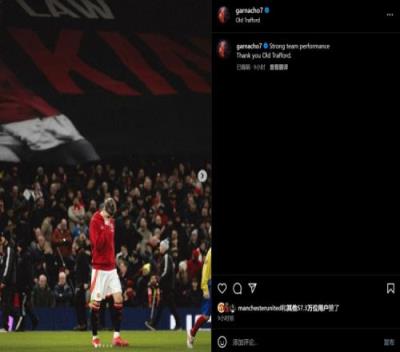 体育资讯1月24日报道宣称 欧联杯联赛阶段第7轮,曼联主场2-1绝杀流浪者。赛后,加纳乔更新社媒,称赞了球队的表现,感谢了主场球迷们。