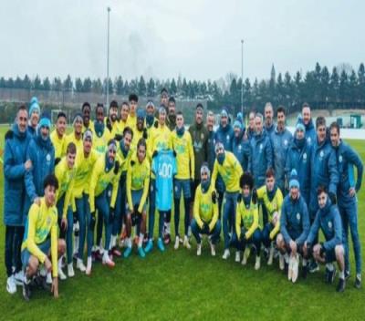 在本周训练中,德布劳内获赠了曼城“400”印号的球衣,在训练中和全队拍摄合照,庆祝这一里程碑时刻。