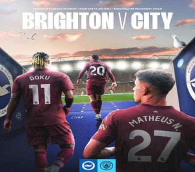 体育资讯11月9日报道宣称 曼城发布赛前海报预热了他们与布莱顿的比赛。