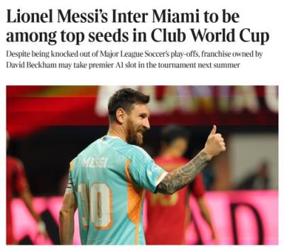 泰晤士报表示,迈阿密国际本周在美职联季后赛中被亚特兰大联淘汰,这意味着,东道主不会成为美职联冠军。迈阿密国际赢得了“美职联支持者盾”,该奖项颁给常规赛结束时东部和西部联盟战绩最佳的球队,美职联的正式冠军则将于12月的季后赛决赛中揭晓。