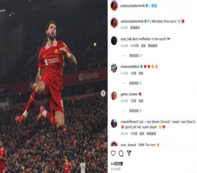 索博斯洛伊也在赛后通过社媒晒出自己的庆祝照,并配文:“接下来是温布利时间!”利物浦将在温布利举行的联赛杯决赛对阵纽卡。