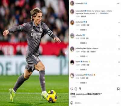 本场比赛莫德里奇精彩外脚背助攻姆巴佩破门,赛后他也在个人社媒晒出本场照片,配文写道:“对全队来说这场比赛并不容易,取得一场重要胜利。我们还要继续争取更多。”