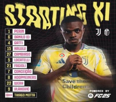 尤文替补:23-平索里奥、29-迪格雷戈里奥、37-萨沃纳、40-鲁希、47-里佐、19-凯夫伦-图拉姆、51-姆班古拉、46-帕纽科、17-阿季奇、43-奥乌苏、10-伊尔迪兹、44-普尼奥