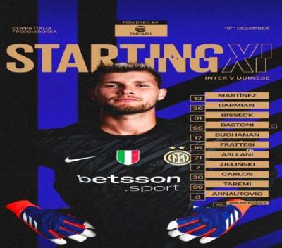 体育资讯12月20日报道宣称 国米将在本轮意大利杯对阵乌迪内斯,赛前首发已经公布。今夏新援何塞普-马丁内斯迎来国米生涯首秀。